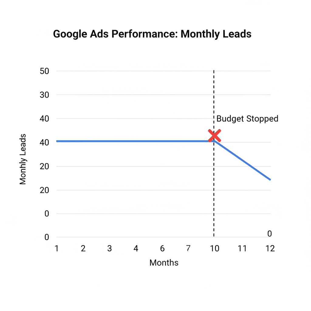 Or worse - you were running ads last month, but you paused the campaign. Now when someone searches for exactly what you do, you're invisible. They hire your competitor instead.